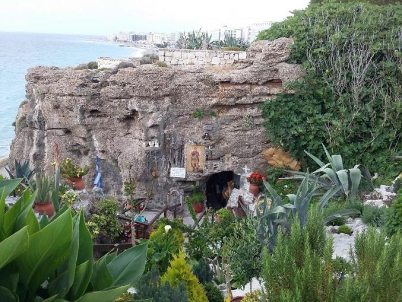 Έτσι έφτιαξε στον κεντρικό δρόμο απάνω σχεδόν ένα μικρό πρόχειρο καντηλάκι. Μια μέρα που άναβε το καντήλι, του έπεσε κάτι και κατρακύλησε στους βράχους. Στην προσπάθεια του να το βρει, το ανακάλυψε μέσα σε αυτή τη σπηλιά, η οποία ήταν καλυμμένη από δέντρα και πέτρες. Έκτοτε αυτή η σπηλιά είναι το σπίτι του Αρχαγγέλου Μιχαήλ του Πανορμίτη στη Ρόδο.