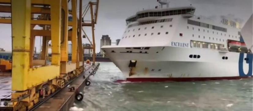 Η σύγκρουση του φέρι με τον γερανό φαίνεται πως προκλήθηκε από τον κακό καιρό, αφού στην περιοχή έπνεαν εξαιρετικά ισχυροί άνεμοι. Σύμφωνα με τα διεθνή μέσα, από το ατύχημα δεν τραυματίστηκε κανείς από τους παρευρισκόμενους.