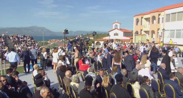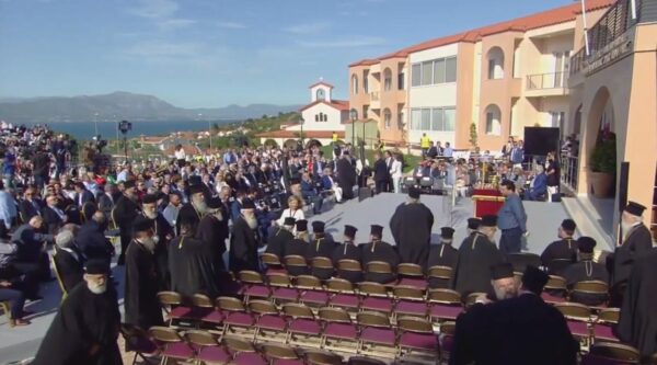 Παρουσία πλήθους κόσμου εγκαινιάζεται σε λίγα λεπτά το Κέντρο Γεροντολογίας και Προνοιακής Υποστήριξης στο Δήλεσι Βοιωτίας, προεστώτων του Παναγιωτάτου Οικουμενικού Πατριάρχου, κ.κ. Βαρθολομαίου, και του Μακαριωτάτου Αρχιεπισκόπου Αθηνών και πάσης Ελλάδος, κ.κ. Ιερωνύμου και με την υψηλή παρουσία του Προέδρου της Ελληνικής Δημοκρατίας, κ. Προκόπη Παυλόπουλου.