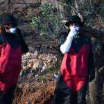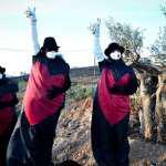 Σε σημείο από το οποίο περνούν οι μετέχοντες στη μαραθώνια διαδρομή, τοποθέτησαν πανό, ενώ τρία άτομα φορούσαν μαύρα, με μία μεγάλη κόκκινη καρδιά, μάσκες και κρατούσαν κλαδί ελιάς.
