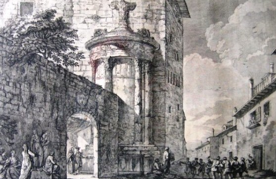 «Έστι δε οδός από του πρυτανείου καλουμένη Τρίποδες∙ αφ’ ου καλούσι το χωρίον, ναοί όσον ες τούτο μεγάλοι και σφισιν εφεστήκασι τρίποδες, χαλκοί. (Παυσανίας, Ελλάδος Περιήγησις)».
