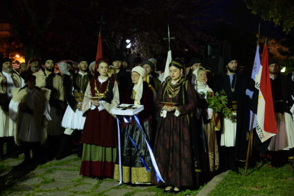 Συγκινητική ήταν η εκδήλωση προς τιμήν των χιλιάδων (10.000 περίπου) Πατρινών που εσφαγιάσθησαν η καθ’ οιονδήποτε άλλον τρόπον μαρτυρικώς ετελειώθησαν, υπό των βαρβάρων Οθωμανών Τούρκων, στις 2 και 3 Απριλίου 1821. Ήταν τότε Σάββατο του Λαζάρου και η Κυριακή των Βαΐων.