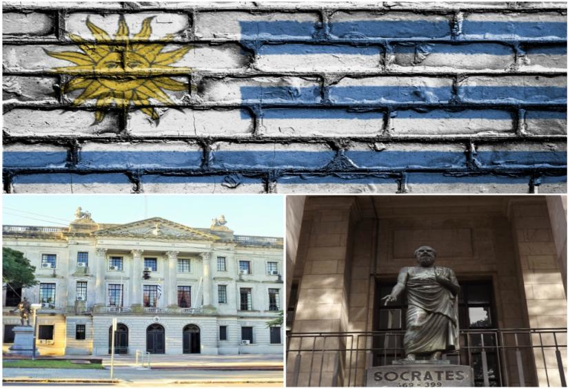 Στο Μοντεβιδέο υπάρχουν 23 δρόμοι που έχουν δανειστεί τα ονόματά τους από αρχαίους φιλοσόφους, όπως το άγαλμα του φιλόσοφου Σωκράτη που κοσμεί την είσοδο της Εθνικής βιβλιοθήκης. Ενώ ο κεντρικός δρόμος της πρωτεύουσας ονομάζεται “Grecia”. Υπάρχουν ακόμα δύο πλατείες που έχουν ελληνικά ονόματα όπως “Πλατεία της Αθήνας” και “Πλατεία της Ελλάδας”. Προτομή του Ομήρου, βρίσκεται σε πάρκο που ονομάζεται Αθήνα. Επίσης στη πρόσοψη νεοκλασικού κτηρίου αναγράφεται η λέξη “Αθηναίος”. Οι Ουρουγουανοί έχουν γνώση για το σύγχρονο, ελληνικό κόσμο των γραμμάτων και τεχνών. Σε κάθε βιβλιοπωλείο της χώρας υπάρχουν τα άπαντα του Νίκου Καββαδία, του Ρίτσου και του Καβάφη.