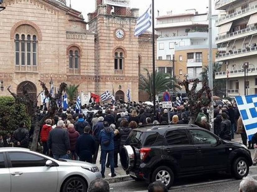 Το συλλαλητήριο ξεκίνησε με τον Σεβασμιώτατο Μητροπολίτη μας κ. Αμβρόσιο, ο οποίος αφού ευχαρίστησε τον κόσμο για την παρουσία του, είπε: «Υπήρξα μαθητής του Γυμνασίου – Λυκείου στη γειτονική πόλη των Πατρών κατά τα έτη 1950 – 1956. Τότε οι καθηγητές μας φύτευαν στις καρδιές μας την αγάπη προς την πατρίδα, προς την Μητέρα πατρίδα! Τη δοξασμένη Ελλάδα μας! Το μάθημα της Ιστορίας ένα σκοπό είχε: Να εδραιώσει και να φυτέψει στις εφηβικές μας καρδιές την αγάπη προς το Χριστό και την Ελλάδα μας. Χριστός και Ελλάδα ήταν η καθημερινή μας… τροφή. Ειδικότερα για τη Μακεδονία μας είχαμε ένα και μοναδικό καθημερινό τραγούδι, το γνωστό ΄΄Μακεδονία ξακουστή΄΄. Έτσι λοιπόν οι δάσκαλοι και καθηγητές μάς έμαθαν να αγαπάμε τη Μακεδονία. Αυτό ακριβώς εφαρμόζω και εγώ σήμερα. Πρέπει να αγαπάμε την πατρίδα μας, την Μακεδονία μας!».