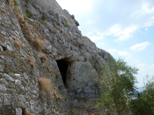 | Η Μυκηναϊκή κρήνη βρίσκεται σε βάθος 40 μέτρων μέσα στη φυσική ρωγμή που δημιουργήθηκε όταν αποκολλήθηκε τμήμα του βράχου |