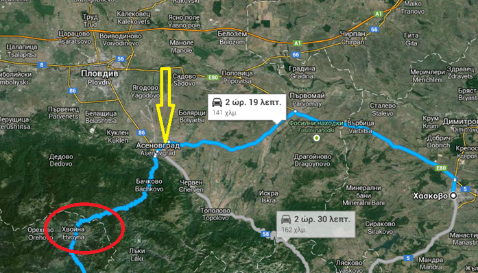 Εἰς τόν χάρτην δείχνω τήν θέσιν τῆς Φιλιππουπόλεως, τό Χάσκοβο, ἐδῶ βρίσκεται τό χωρίον Ἐζέροβον ὃπου εὐρέθη τό δακτυλίδι, καί σάν ἑλλ. τόπον ἀναφορᾶς ἒχω θέσει τό Ὀρμένιον ἐδῶ.