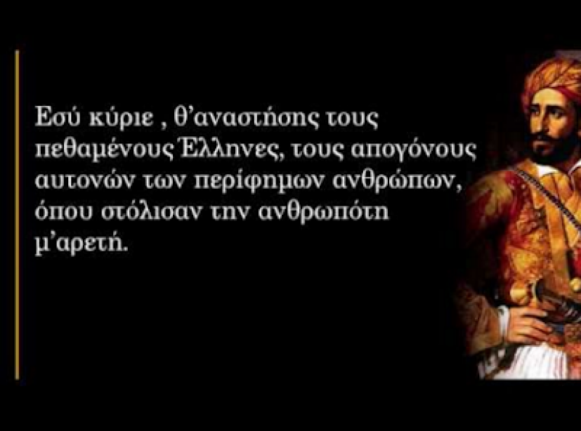 Πατρίδα να θυμάσαι εσύ αυτούς όπου, δια την τιμήν και την λευτερίαν σου, δεν λογάριασαν θάνατο και βάσανα. Κι’ αν εσύ τους λησμονήσεις, θα τους θυμηθούν οι πέτρες και τα χώματα, όπου έχυσαν αίματα και δάκρυα.