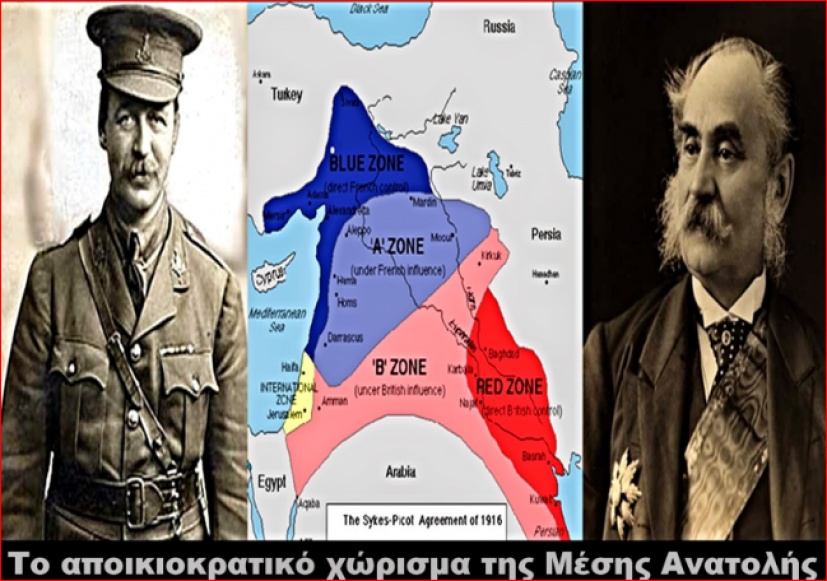 Σύμφωνα με τη συμφωνία αυτή, που πήρε το όνομα της από τον, τότε 36χρονο, Βρετανό συνταγματάρχη Μαρκ Σάικς και τον Γάλλο συνταγματάρχη Φρανσουά Ζορζ-Πικό, η σημερινή Νότια Τουρκία θα ήταν υπό τον έλεγχο της Γαλλίας, η σημερινή Συρία υπό γαλλική επιρροή, το σημερινό Ιράκ και η Ιορδανία υπό βρετανική επιρροή και ένα κομμάτι του σημερινού Ιράν υπό βρετανικό έλεγχο.