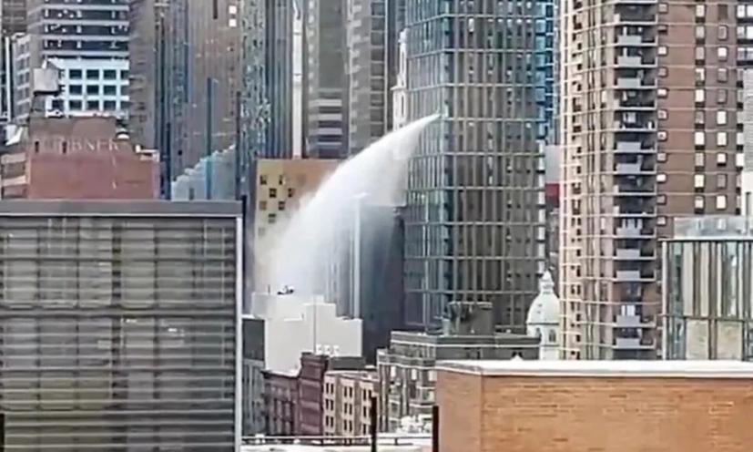 Το περιστατικό έλαβε χώρα σήμερα το πρωί (4/4) ενώ καταγράφηκε σε βίντεο, το οποίο έκανε τον γύρο του διαδικτύου. Το νερό πετάγεται δεκάδες μέτρα πάνω από το έδαφος σε ένα κτίριο στη Δυτική 42η οδό και την Όγδοη λεωφόρο πριν πέσει στον δρόμο. Δεν είναι γνωστό τι προκάλεσε τη διαρροή. Η Πυροσβεστική Υπηρεσία της Νέας Υόρκης που έσπευσε στο σημείο αναφέρει ότι δεν υπήρχαν τραυματίες.