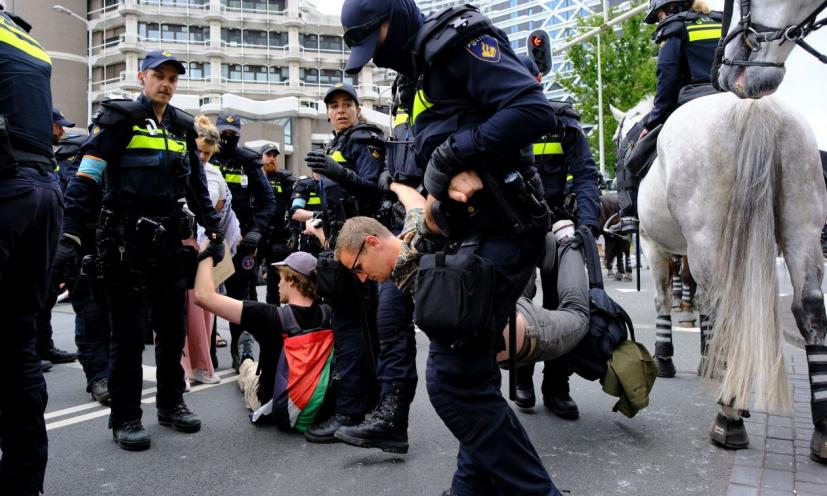 Περίπου διακόσιοι άνθρωποι συνελήφθησαν όταν η ολλανδική αστυνομία διέλυσε διαδήλωση, στο περιθώριο της συνόδου του NATO η οποία ολοκληρώθηκε χθες Τετάρτη στην πόλη της Χάγης. Οι διαδηλωτές, που ανήκαν κυρίως στην οικολογική οργάνωση Extinction Rebellion, απέκλεισαν για κάποια ώρα μείζονα οδικό άξονα, διαμαρτυρόμενοι εναντίον της συνόδου κατά την οποία οι ηγέτες του Οργανισμού του Συμφώνου του Βόρειου Ατλαντικού, συμπεριλαμβανομένου του προέδρου των ΗΠΑ Ντόναλντ Τραμπ, ενέκριναν άνευ προηγουμένου αύξηση των στρατιωτικών δαπανών των κρατών μελών. Διαμαρτύρονταν επίσης για τις ενέργειες του στρατού του Ισραήλ στη Λωρίδα της Γάζας. Η αστυνομία συγκρούστηκε με διαδηλωτές σε ορισμένες περιπτώσεις κατά τις συλλήψεις, σύμφωνα με δημοσιογράφους επιτόπου. Αστυνομικοί χρησιμοποίησαν ρόπαλα. Διαδηλωτές είχαν ήδη προσπαθήσει να καταλάβουν άλλον αυτοκινητόδρομο κοντά στη Χάγη προχθές Τρίτη, την πρώτη ημέρα της συνόδου. Περίπου 30 άνθρωποι συνελήφθησαν σε αυτή την περίπτωση. Η διοργάνωση της συνόδου του NATO σήμανε τη μεγαλύτερη κινητοποίηση των δυνάμεων ασφαλείας της Ολλανδίας στην ιστορία της χώρας. Ο χώρος όπου διεξήχθη βρισκόταν περίπου 8 χιλιόμετρα από τον αυτοκινητόδρομο που προσπάθησαν να αποκλείσουν οι συμμετέχοντες στην κινητοποίηση.