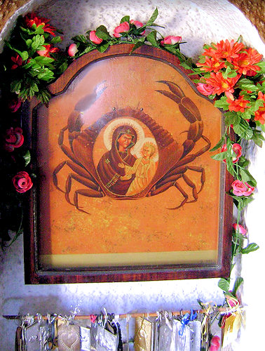 Την άλλη μέρα, πήγαν και έψαξαν όλοι μαζί στα βράχια και βρήκαν την ίδια εικόνα, φρουρούμενη πάλι από κάβουρες! Έτσι και αποφάσισαν να χτίσουν εκεί την μικρή εκκλησούλα που βλέπει κανείς και σήμερα, απλή, ταπεινή και τόσο, μα τόσο όμορφη!
