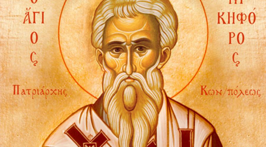 Ο Άγιος Νικηφόρος, γεννήθηκε στην Κωνσταντινούπολη το 758 μ.Χ. Οι γονείς του Θεόδωρος και Ευδοκία ανήκαν σε αρχοντική και επίσημη κοινωνική τάξη αλλά ήταν ευσεβείς και ενάρετοι άνθρωποι οι οποίοι γαλούχησαν τον γιο τους με τα νάματα των Θείων Γραφών. Η προσήλωση μάλιστα του πατέρα του στην ορθή πίστη, έγινε αιτία να διωχθεί και να εξορισθεί από τον εικονομάχο και δυσεβή αυτοκράτορα Κωνσταντίνο Ε’, τον Κοπρώνυμο στη Νίκαια, όπου και πέθανε.