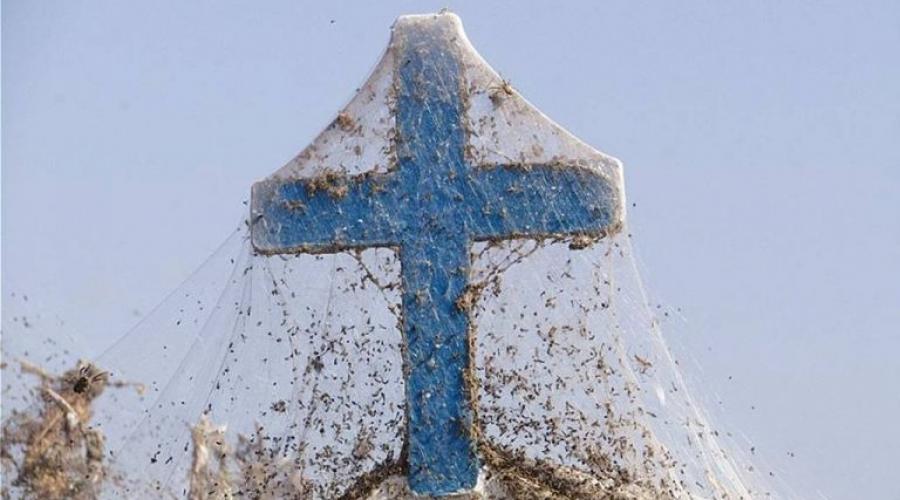 Φαίνεται ότι οι αράχνες θα μας ταλαιπωρούν για χρόνια. Μετά το Αιτωλικό, που είχε γεμίσει με ιστούς, σειρά πήρε η λίμνη Βιστωνίδα, στο δρόμο μπροστά από το Μετόχι της Μονής Βατοπεδίου στο Πόρτο Λάγος.