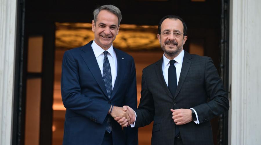 Τον Πρόεδρο της Κυπριακή Δημοκρατίας, Νίκο Χριστοδουλίδη, υποδέχθηκε στο Μέγαρο Μαξίμου στις 11 το πρωί ο πρωθυπουργός Κυριάκος Μητσοτάκης, στο πλαίσιο των εργασιών της 3ης Διακυβερνητικής Συνόδου Ελλάδας – Κύπρου. Μετά την κατ’ ιδίαν συνάντηση των δύο ηγετών, πραγματοποιήθηκε η συνεδρίαση της Ολομέλειας της Διακυβερνητικής Συνόδου, και στη συνέχεια ο κ. Μητσοτάκης και ο κ.