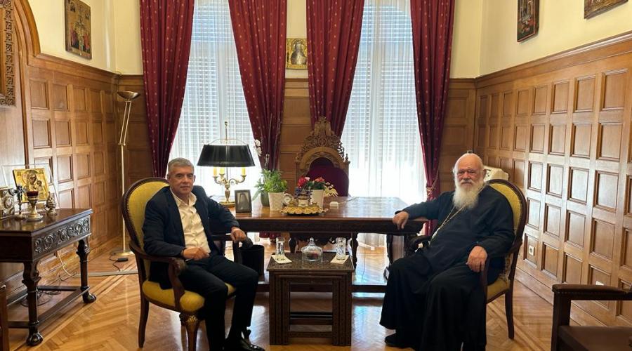 Με τον Περιφερειάρχη Θεσσαλίας κ. Κώστα Αγοραστό συναντήθηκε σήμερα στο Αρχιεπισκοπικό Μέγαρο ο Μακαριώτατος Αρχιεπίσκοπος Αθηνών και πάσης Ελλάδος κ.κ. Ιερώνυμος.