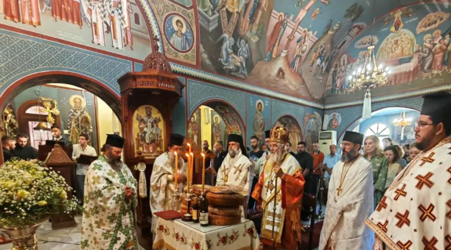 Ο Σεβασμιώτατος Μητροπολίτης Λέρου κ. Παΐσιος συλλειτούργησε με τον Θεοφιλέστατο Επίσκοπο Στρατονικείας κ. Στέφανο, και συμπαραστάθηκε από τον Αρχιμανδρίτη Γεδεών και τον αιδεσιμώτατο εφημέριο π. Νικόλαο.
