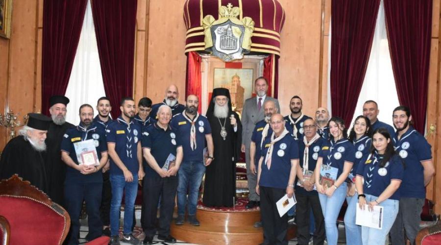Την αντιπροσωπεία των Προσκόπων της Ιερουσαλήμ για την υποβολή ευχών για την εορτήν του Πάσχα και αίτηση βοηθείας για τις δραστηριότητές τους.