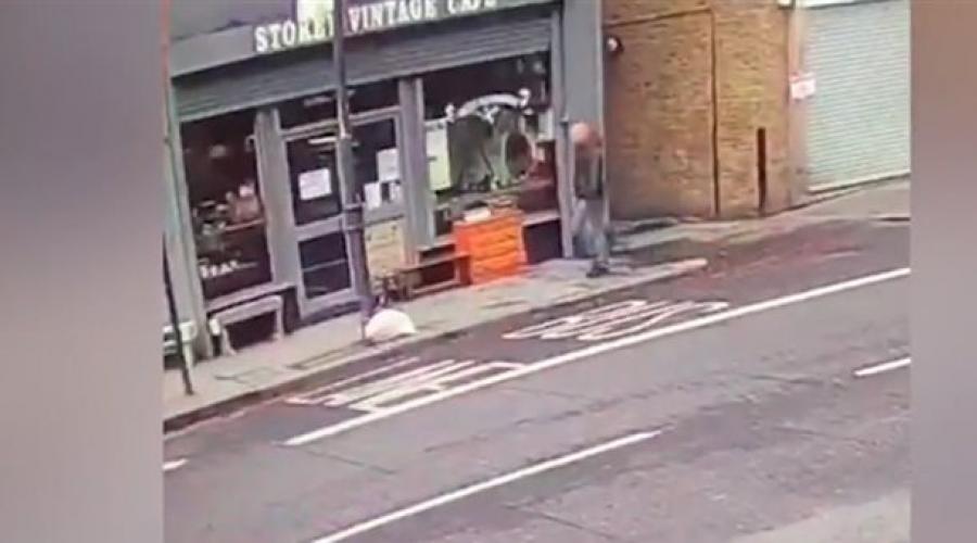 Ένας τυχερός πεζός λίγο έλειψε να τραυματιστεί σοβαρά, καθώς περνούσε από κτίριο στο ανατολικό Λονδίνο.