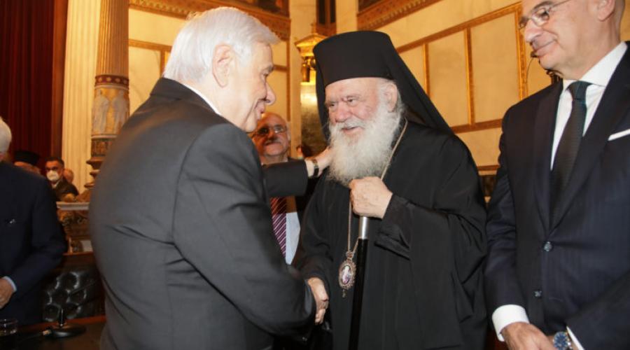 Ο Αρχιεπίσκοπος Ιερώνυμος στην τελετή υποδοχής του Προκόπη Παυλόπουλου στην Ακαδημία Αθηνών