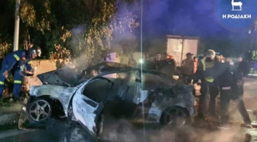 Τροχαίο ατύχημα σημειώθηκε το βράδυ της Παρασκευής κοντά στο Φαληράκι στη Ρόδο, με αποτέλεσμα να τυλιχθεί στις φλόγες ένα αυτοκίνητο και να τραυματιστεί ο οδηγός του.