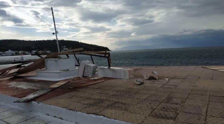 Μια ξύλινη εξέδρα καταστήματος, στην παραλία της Ερατεινής, έγινε έρμαιο των μποφόρ με αποτέλεσμα να... διαλύσει ένα ηρώο