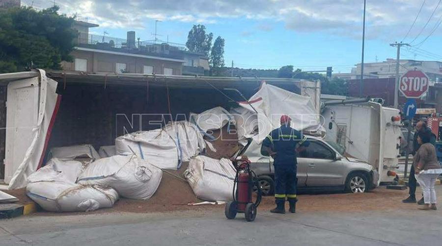 Νταλίκα που μετέφερε χώματα ανετράπη το πρωί της Τετάρτης στα Βλάχικα της Βάρης.