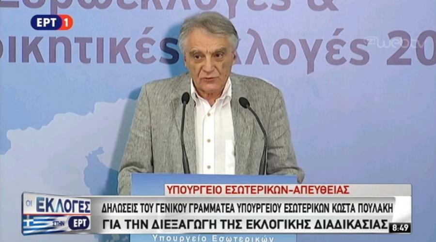 Το Υπουργείο Εσωτερικών έχει από νωρίς το πρωί επικοινωνία με όλους τους δήμους της επικράτειας, οι εκπρόσωποι των οποίων ανέφεραν στο Υπουργείο ότι ουδέν πρόβλημα υπάρχει στην εκλογική διαδικασία. Οι ίδιες πηγές ανέφεραν στο ΑΠΕ-ΜΠΕ ότι στα εκλογικά κέντρα όλων των μεγάλων αστικών κέντρων έχουν τοποθετηθεί δίπλα στον δικαστικό αντιπρόσωπο δύο γραμματείς για τη διευκόλυνση του έργου του.