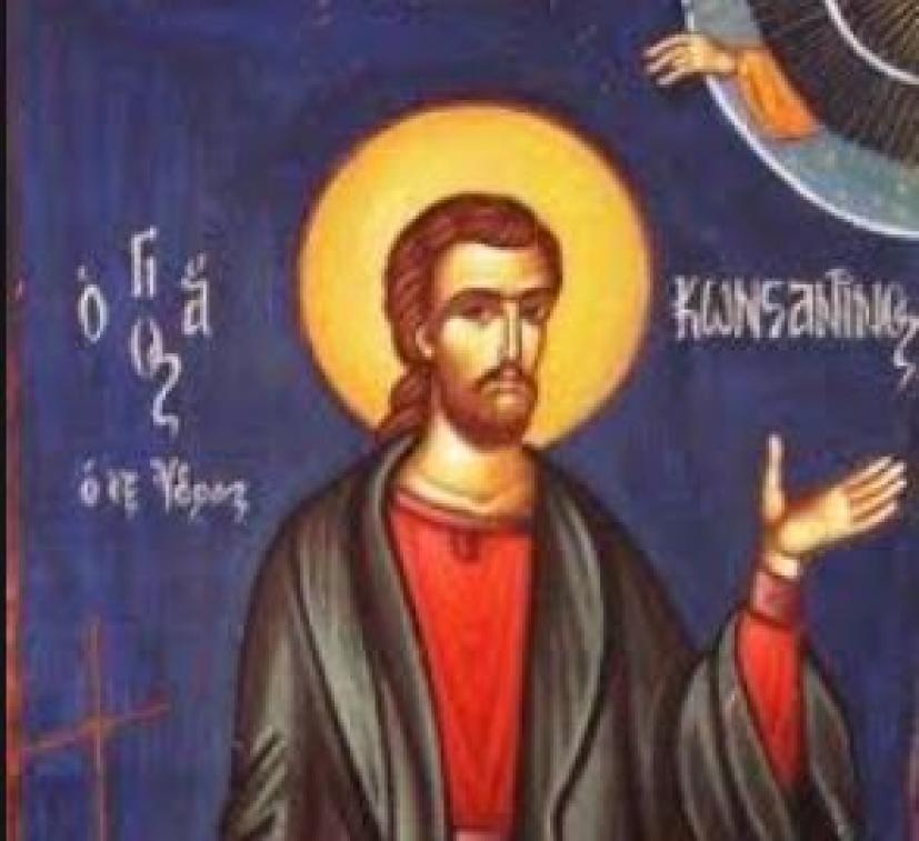 Ο Άγιος Κωνσταντίνος γεννήθηκε στην Ύδρα και ο πατέρας του ονομαζόταν Μιχαήλ, η δε μητέρα του Μαρίνα.