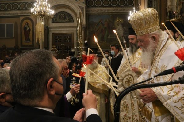 Ο Αρχιεπίσκοπος τέλεσε την ακολουθία της Αναστάσεως, τον Όρθρο και την Θεία Λειτουργία στον Ιερό Μητροπολιτικό Ναό Αθηνών συμπαραστατούμενος από τους Επισκόπους Ευρίπου κ. Χρυσόστομο και Ωρεών κ. Φιλόθεο, Αρχιγραμματέα της Ιεράς Συνόδου της Εκκλησίας της Ελλάδος, ενώ παρέστησαν εκπρόσωποι της Κυβέρνησης, Αρχηγοί Κομμάτων, των Ενόπλων Δυνάμεων, των Σωμάτων Ασφαλείας, της Τοπικής Αυτοδιοίκησης και αρκετοί πιστοί.
