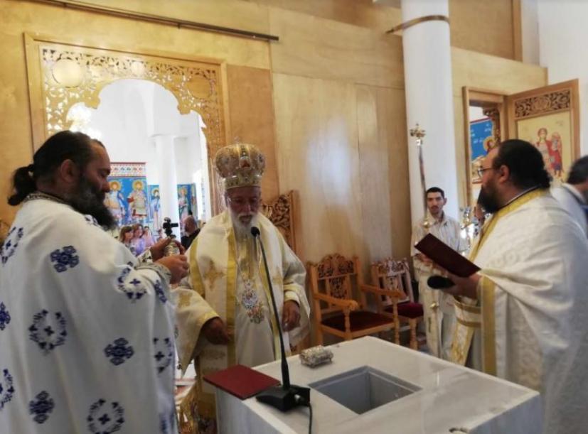 Ο Σεβασμιώτατος αναφέρθηκε στην ιστορία του παλαιού Ναού και τους κόπους για την ανοικοδόμηση του νέου και μεγαλοπρεπούς. Συνεχάρηκε όλους όσους βοήθησαν καθ΄οιονδήποτε τρόπο στα έργα και προχείρισε σε Πρωτοπρεσβύτερο τον Εφημέριο του Ναού, Ιερέα Γεώργιο Αντωνόπουλο, αναγνωρίζοντας τους κόπους του για την ανέγερση και αποπεράτωση του Ναού.