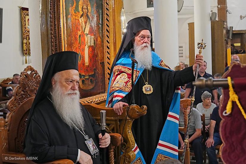 Την Τετάρτη 13 Αυγούστου το απόγευμα στον κατάμεστο Ιερό Ναό Κοιμήσεως της Θεοτόκου Ναούσης, ξεκίνησαν όπως κάθε χρόνο στην Ημαθία οι λατρευτικές εκδηλώσεις για την εορτή της Κοιμήσεως της Υπεραγίας Θεοτόκου. Αρχικά τελέστηκε ο Εσπερινός και στη συνέχεια η Μεγάλη Παράκληση και η ακολουθία των Εγκωμίων του Επιταφίου προς την Υπεραγία Θεοτόκο χοροστατούντος του Σεβασμιωτάτου Μητροπολίτου Λαοδικείας κ. Θεοδωρήτου και συγχοροστατούντος του Ποιμενάρχη μας Σεβασμιωτάτου Μητροπολίτου Βεροίας, Ναούσης και Καμπανίας κ. Παντελεήμονος, ο οποίος κήρυξε και το θείο λόγο. Κατά την αντιφώνησή του ο Σεβασμιώτατος Μητροπολίτης Λαοδικείας κ. Θεοδώρητος, ο οποίος είναι εκπρόσωπος της Α.Θ.Π. του Οικουμενικού Πατριάρχου κ.κ. Βαρθολομαίου εν Αθήναις, μετέφερε προς τον Σεβασμιώτατο, τον ιερό κλήρο, τις τοπικές αρχές και το χριστεπώνυμο πλήρωμα τις ευχές του Οικουμενικού Πατριάρχου για την επερχόμενη εορτή της Κοιμήσεως της Θεοτόκου. Ακολούθησε Ιερά Λιτανεία του Επιταφίου της Παναγίας πέριξ του Ιερού Ναού.