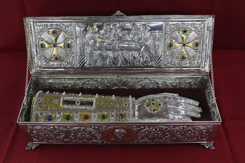 Θέτοντες λοιπόν τό ιερό λείψανο σε χρυσοκόλλητη λάρνακα καί βαστάζοντας αυτήν, εκίνησαν τήν οδοιπορία πρόθυμοι μέ ψαλμωδία πολλή, μέ λαμπάδες καί θυμιάματα καί σε όσες πόλεις καί χώρες υποδέχονταν τόν Άγιο, αγιαζόντουσαν.