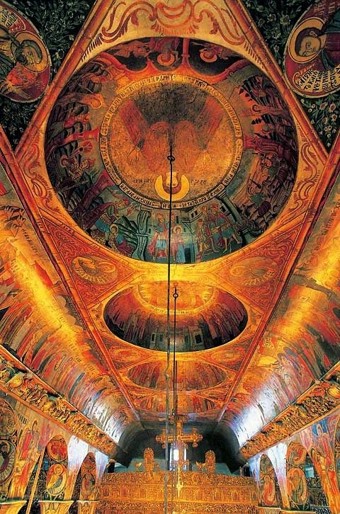 Στον δεύτερο τρούλο αναπαριστάται η Παναγία με ζωγραφισμένες επίσης περιμετρικά, σκηνές του βίου της. Ο τρίτος τρούλος απεικονίζει τον Παντοκράτορα. Στον τέταρτο τρούλο η αγιογραφία αναπαριστά τον Θεό με μορφή γέροντα.