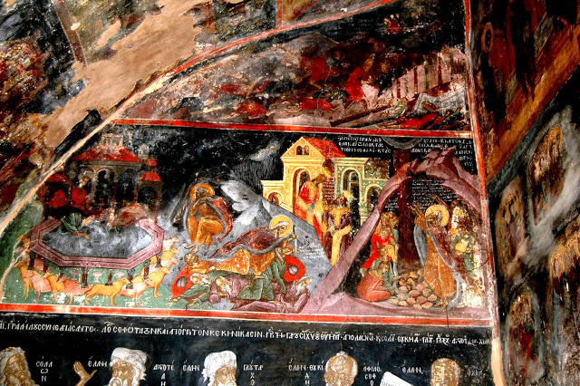 Εικονογραφούνται σκηνές από τον Ακάθιστο Ύμνο και το βίο της Παναγίας, χρονολογημένες το 18ο αιώνα.