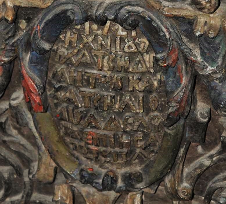 | Η επιγραφή των τεχνιτών στο τέμπλο |