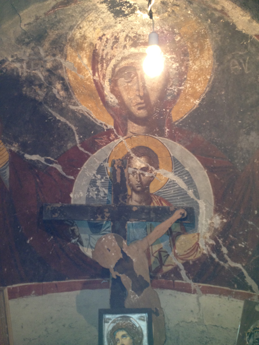 | Η τοιχογραφία της Πλατυτέρας, στην κόγχη του ιερού |