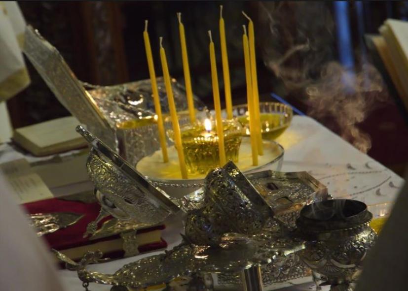 Χρησιμοποιούμε επτά κεριά σε συμβολισμό της αγιότητας. Διαβάζονται επτά ευαγγέλια, επτά αποστολικά αναγνώσματα και επτά ευχές. Στο τέλος του Ιερού Μυστηρίου όλοι οι πιστοί γονατίζουν και ο ιερέας διαβάζει την συγχωρητική ευχή, με την οποίαν συγχωρούνται τα αμαρτήματα των πιστών που έχουν ήδη εξομολογηθεί.Ο ιερέας κατόπιν μυρώνει τους πιστούς στα διάφορα μέλη του σώματος.-Στο μέτωπο για τον αγιασμό των σκέψεων μας.